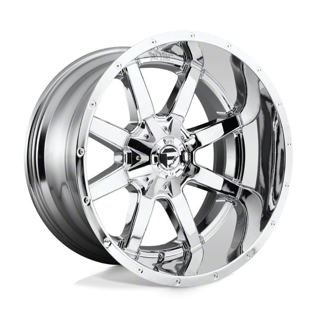 Fuel Wheels Maverick Chrome 6-Lug Wheel; 18x9; 13mm Offset is a perfect blend of style and rugged design, making it a standout choice for those looking to enhance their vehicle's aesthetic appeal. Its bold, dark metallic finish pairs seamlessly with a wide variety of vehicle styles, offering both modernity and durability. Built by Fuel Wheels, this wheel is designed to elevate your vehicle's appearance with its robust presence.