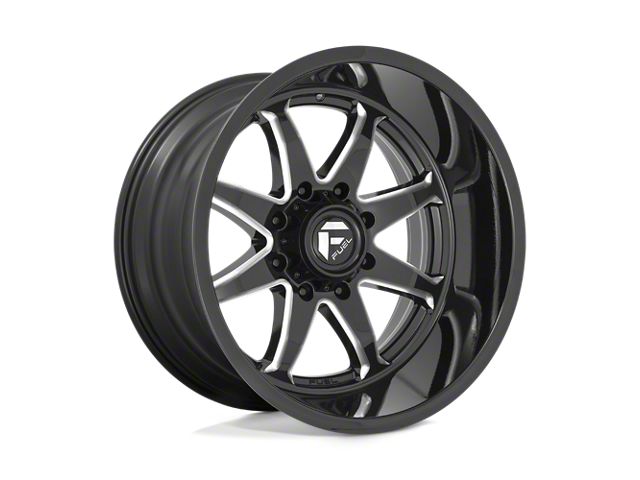 The 20x9 Fuel Wheels Hammer Gloss Black Milled 8-Lug Wheel is completed in a high-quality gloss black finish with steel milled accents that will be the envy of everyone. For added protection and good looks, there is a durable clear coat that withstands the rigors of everyday driving,