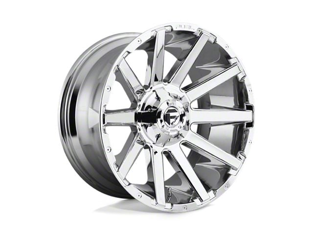 Fuel Wheels Contra Chrome 6-Lug Wheel; 20x9; 20mm Offset is a perfect blend of style and rugged design, making it a standout choice for those looking to enhance their vehicle's aesthetic appeal. Its bold, dark metallic finish pairs seamlessly with a wide variety of vehicle styles, offering both modernity and durability. Built by Fuel Wheels, this wheel is designed to elevate your vehicle's appearance with its robust presence.