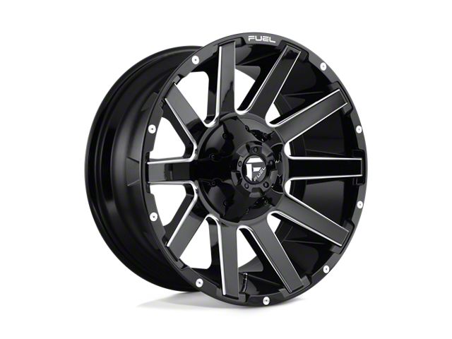The 20x9 Fuel Wheels Contra Gloss Black Milled 8-Lug Wheel is completed in a high-quality gloss black finish with steel milled accents that will be the envy of everyone. For added protection and good looks, there is a durable clear coat that withstands the rigors of everyday driving,