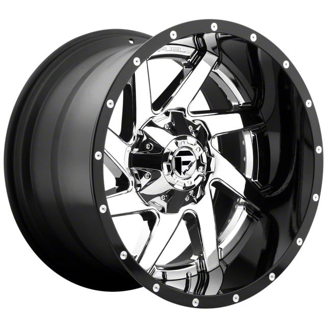 Fuel Wheels Renegade Chrome with Gloss Black Lip 8-Lug Wheel; 22x10; 6mm Offset is a perfect blend of style and rugged design, making it a standout choice for those looking to enhance their vehicle's aesthetic appeal. Its bold, dark metallic finish pairs seamlessly with a wide variety of vehicle styles, offering both modernity and durability. Built by Fuel Wheels, this wheel is designed to elevate your vehicle's appearance with its robust presence.