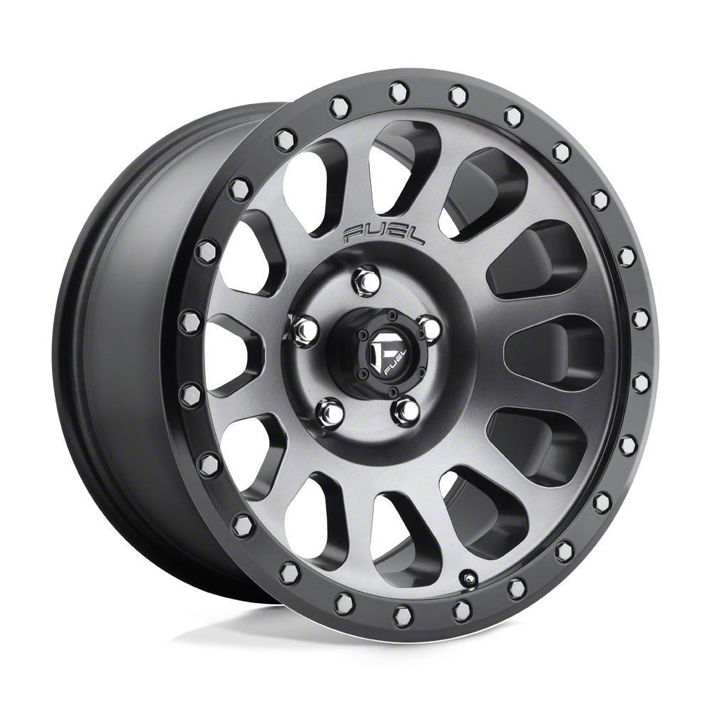 The 18x9 Fuel Wheels Vector Matte Gunmetal with Black Bead Ring 8-Lug Wheel is completed in a matte gunmetal finish with a black bead ring that will be the envy of everyone. For added protection and good looks, there is a durable clear coat that withstands the rigors of daily driving.