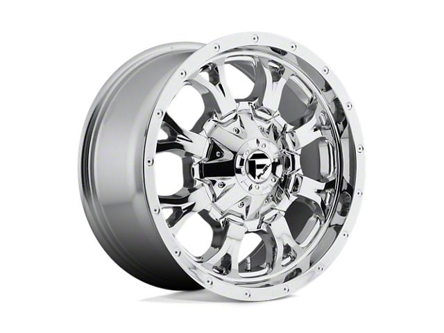 Fuel Wheels Krank Chrome 8-Lug Wheel; 20x9; 1mm Offset is a perfect blend of style and rugged design, making it a standout choice for those looking to enhance their vehicle's aesthetic appeal. Its bold, dark metallic finish pairs seamlessly with a wide variety of vehicle styles, offering both modernity and durability. Built by Fuel Wheels, this wheel is designed to elevate your vehicle's appearance with its robust presence.
