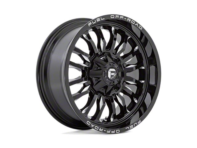 Fuel Wheels Arc Gloss Black Milled 8-Lug Wheel; 20x9; 1mm Offset is a perfect blend of style and rugged design, making it a standout choice for those looking to enhance their vehicle's aesthetic appeal. Its bold, dark metallic finish pairs seamlessly with a wide variety of vehicle styles, offering both modernity and durability. Built by Fuel Wheels, this wheel is designed to elevate your vehicle's appearance with its robust presence.