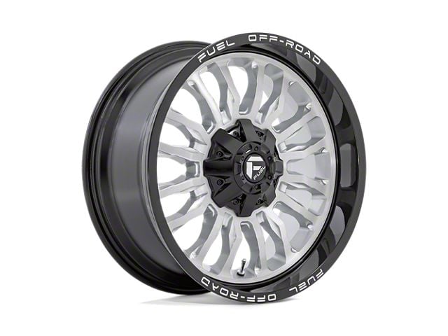 Fuel Wheels Arc Silver Brushed Face with Milled Black Lip 8-Lug Wheel; 20x9; 1mm Offset is a perfect blend of style and rugged design, making it a standout choice for those looking to enhance their vehicle's aesthetic appeal. Its bold, dark metallic finish pairs seamlessly with a wide variety of vehicle styles, offering both modernity and durability. Built by Fuel Wheels, this wheel is designed to elevate your vehicle's appearance with its robust presence.