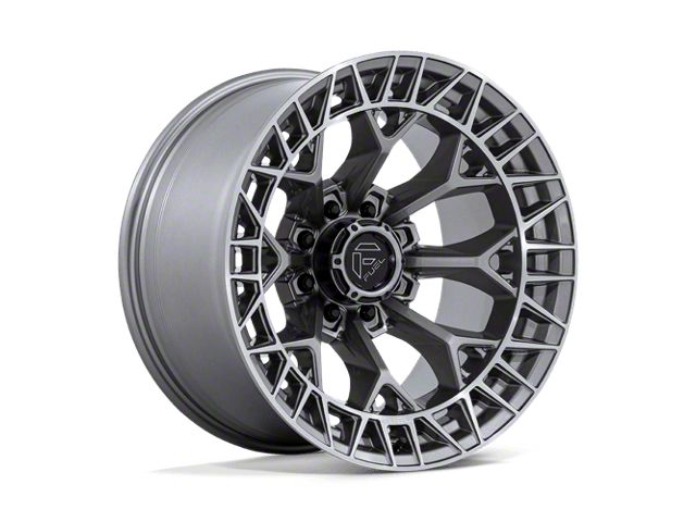 Fuel Wheels Charger Platinum 8-Lug Wheel; 20x10; -18mm Offset is a perfect blend of style and rugged design, making it a standout choice for those looking to enhance their vehicle's aesthetic appeal. Its bold, dark metallic finish pairs seamlessly with a wide variety of vehicle styles, offering both modernity and durability. Built by Fuel Wheels, this wheel is designed to elevate your vehicle's appearance with its robust presence.