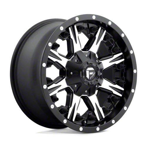 Fuel Wheels Nutz Matte Black Machined 8-Lug Wheel; 20x10; -12mm Offset - This wheel's elegant design will certainly enhance your vehicle's aesthetic, complementing its luxury and performance. The unique styling of this wheel makes it an ideal choice for a standout quality of your ride, reflecting the premium quality associated with the Fuel Wheels brand.