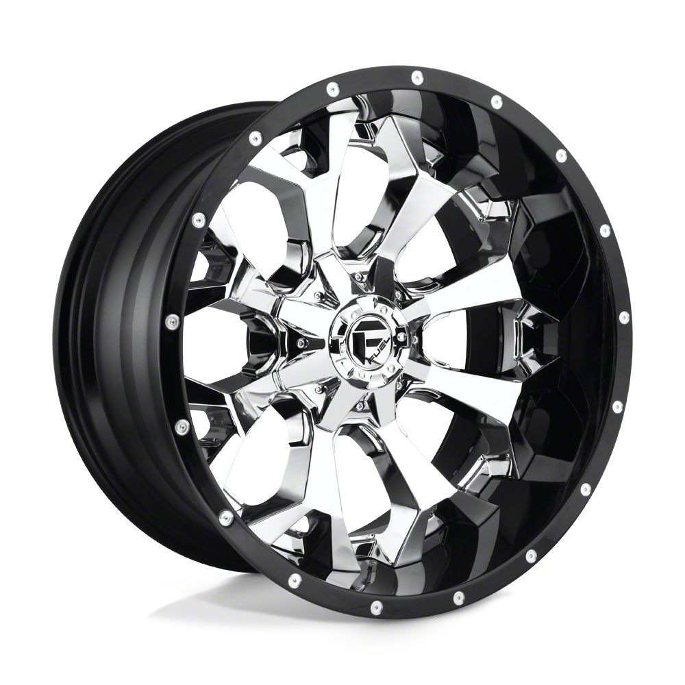 The 22x10 Fuel Wheels Assault Chrome with Gloss Black Lip 8-Lug Wheel is completed in a high-quality chrome finish with a gloss black lip for an aggressive appearance that will turn heads. This wheel features a durable clear coat that stands up to the hazards of everyday driving.