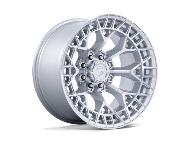 Fuel Wheels Charger Gloss Silver with Machined Face 8-Lug Wheel; 20x10; -18mm Offset is a perfect blend of style and rugged design, making it a standout choice for those looking to enhance their vehicle's aesthetic appeal. Its bold, dark metallic finish pairs seamlessly with a wide variety of vehicle styles, offering both modernity and durability. Built by Fuel Wheels, this wheel is designed to elevate your vehicle's appearance with its robust presence.