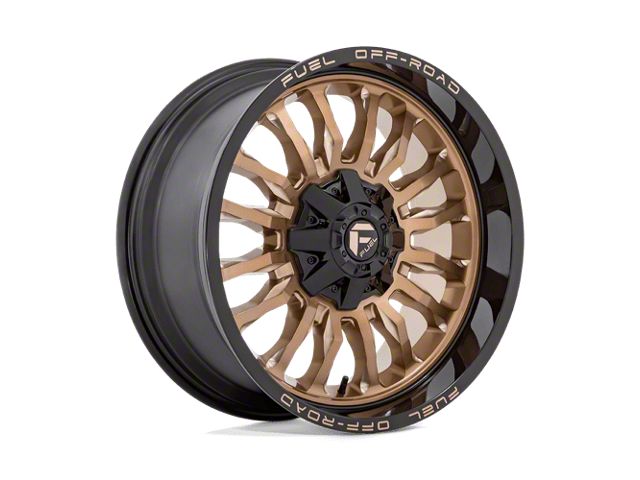 Fuel Wheels Arc Platinum Bronze with Black Lip 8-Lug Wheel; 22x10; -18mm Offset is a perfect blend of style and rugged design, making it a standout choice for those looking to enhance their vehicle's aesthetic appeal. Its bold, dark metallic finish pairs seamlessly with a wide variety of vehicle styles, offering both modernity and durability. Built by Fuel Wheels, this wheel is designed to elevate your vehicle's appearance with its robust presence.