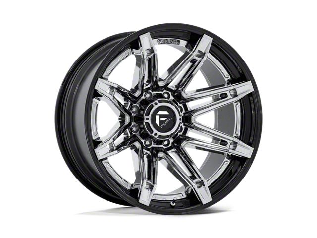 Fuel Wheels Fusion Forged Brawl Chrome with Gloss Black Lip 8-Lug Wheel; 24x12; -44mm Offset. Elevate your vehicle's aesthetic with the Fusion Forged Brawl Chrome with Gloss Black Lip 8-Lug Wheel; 24x12; -44mm Offset from Fuel Wheels. Its design exudes luxury and robustness, enhancing the overall appearance of your ride without compromising its original charm.