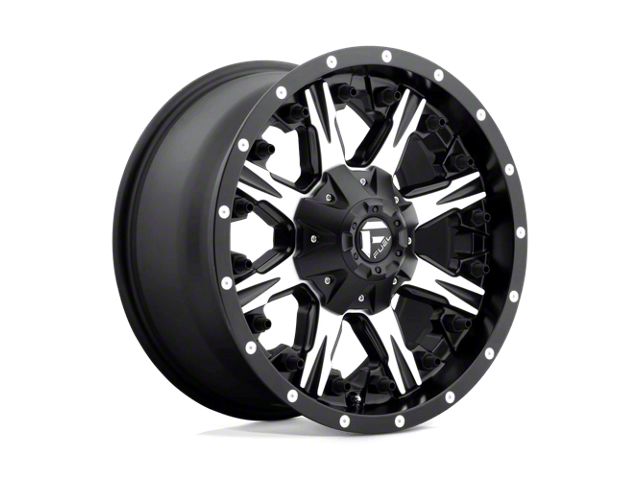 Fuel Wheels Nutz Matte Black Machined 8-Lug Wheel; 20x10; -12mm Offset - This wheel's elegant design will certainly enhance your vehicle's aesthetic, complementing its luxury and performance. The unique styling of this wheel makes it an ideal choice for a standout quality of your ride, reflecting the premium quality associated with the Fuel Wheels brand.