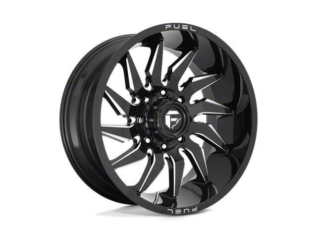 Fuel Wheels Saber Gloss Black Milled 8-Lug Wheel; 22x10; -18mm Offset The Fuel Wheels Saber Gloss Black Milled 8-Lug Wheel combines a sleek, sophisticated design with premium construction that enhances the visual appeal and complements a wide range of vehicle styles. This wheel is perfect for those seeking to make a bold statement while maintaining elegance and robustness.