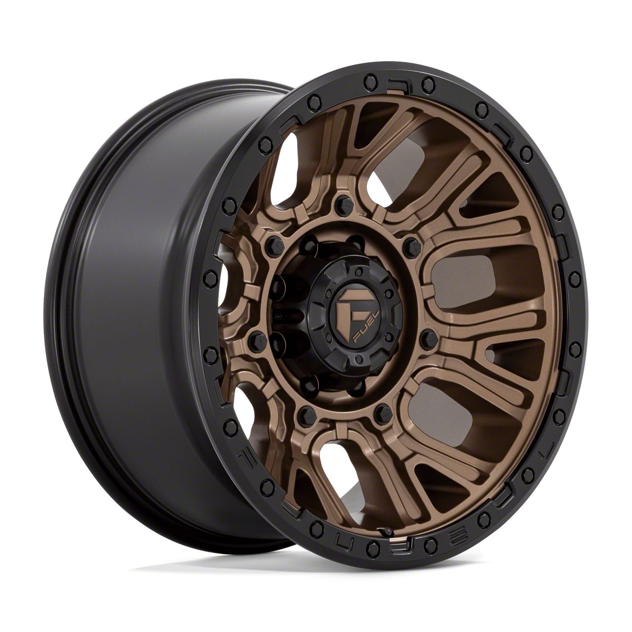 Fuel Wheels Traction Matte Bronze with Black Ring 8-Lug Wheel; 20x10; -18mm Offset The Fuel Wheels Traction Matte Bronze with Black Ring 8-Lug Wheel combines a sleek, sophisticated design with premium construction that enhances the visual appeal and complements a wide range of vehicle styles. This wheel is perfect for those seeking to make a bold statement while maintaining elegance and robustness.
