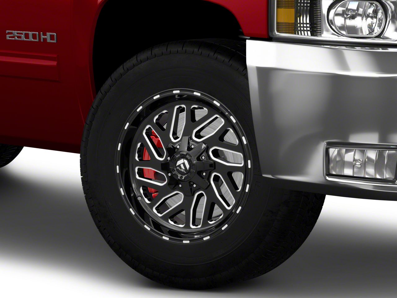 Application. This Fuel Wheels Triton Gloss Black Milled 8-Lug Wheel; 18x9; -12mm Offset, with a backspace of 4.528 Inch, 115mm; and bolt pattern of 8 x 165.1mm (8 x 6.5-Inch), is designed to fit the 2001-2006 Silverado 2500 HD . The precise specifications of the wheel ensure proper alignment and driving stability, perfectly complementing the vehicle's model. Sold individually.