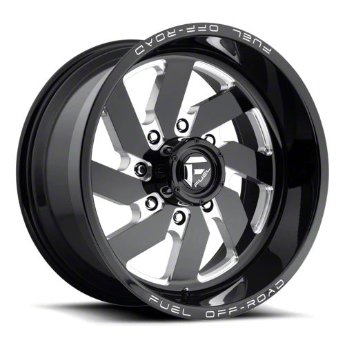 This 20x9 Fuel Wheels Turbo Gloss Black Milled 8-Lug Wheel is completed in a high-quality gloss black finish with steel milled accents that will be the envy of everyone. There's a durable clear coat that protects against driving hazards.