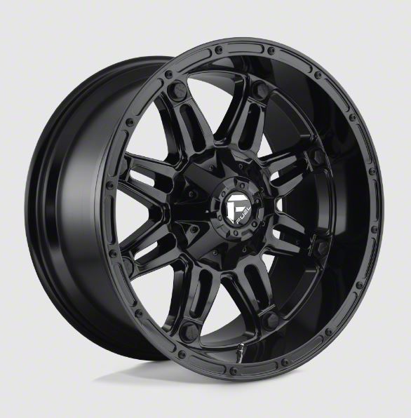 Fuel Wheels Hostage Gloss Black 8-Lug Wheel; 20x10; -18mm Offset - This wheel's elegant design will certainly enhance your vehicle's aesthetic, complementing its luxury and performance. The unique styling of this wheel makes it an ideal choice for a standout quality of your ride, reflecting the premium quality associated with the Fuel Wheels brand.