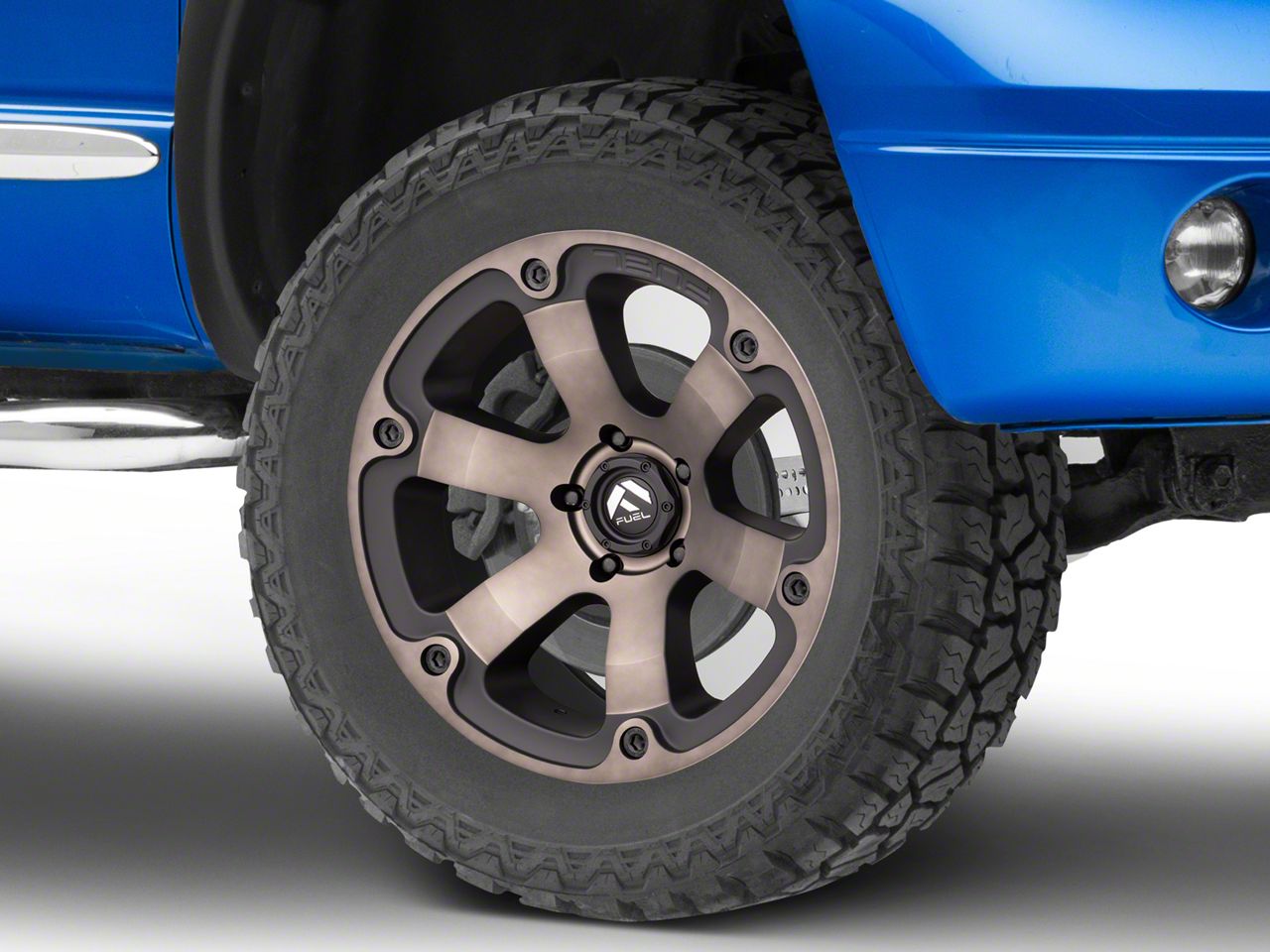 Application. This Fuel Wheels Beast Black Machined with Dark Tint 5-Lug Wheel; 20x9; 1mm Offset with a backspace of 5.04 Inch, 128.1mm; and bolt pattern of 5 x 139.7mm (5 x 5.5-Inch) contributes to impeccable alignment and driving stability. Designed to fit 2002-2008 RAM 1500, Excluding Mega Cab models, sold individually.
