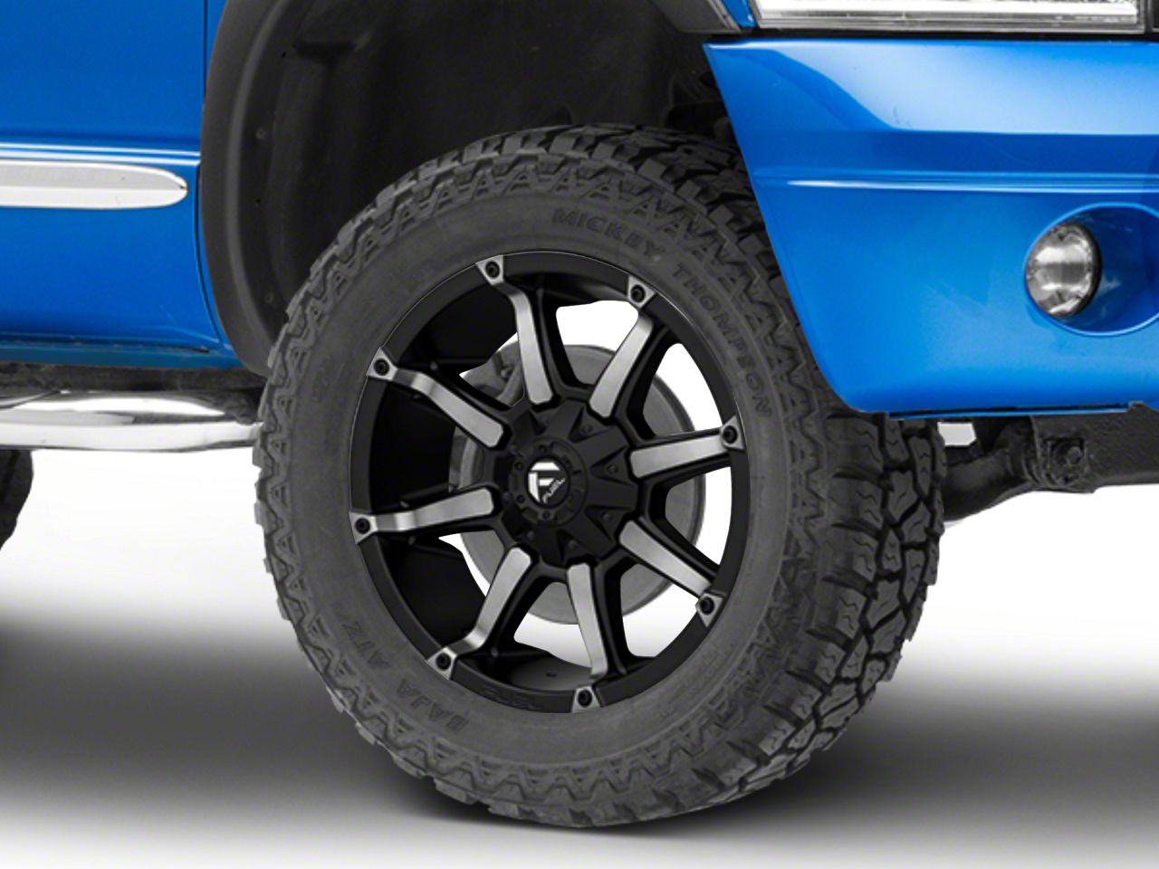 Application. This Fuel Wheels Coupler Black Machined 5-Lug Wheel; 20x9; 20mm Offset, with a backspace of 5.788 Inch, 147.1mm and bolt pattern of 5 x 139.7mm (5 x 5.5-Inch), is designed to enhance alignment and driving stability, ensuring a perfect fit with the vehicle model. Specifically designed to fit 2002-2008 RAM 1500, Excluding Mega Cab models, this wheel's specifications contribute to a seamless alignment and stable driving experience by ensuring the wheel fits perfectly within the vehicle's wheel well, reducing the risk of rubbing issues and optimizing handling characteristics. Sold individually.