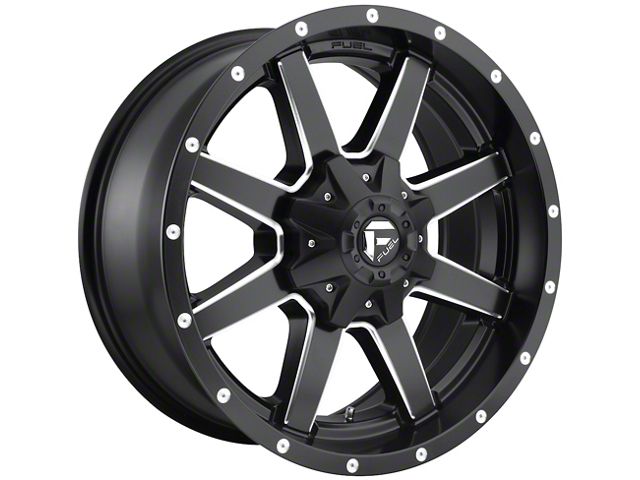 Fuel Wheels Maverick Matte Black Milled 8-Lug Wheel; 20x9; 1mm Offset exudes a sleek aesthetic appeal, complementing a range of vehicle styles. Its dark stainless finish emanates sophistication, while the brand reputation of Fuel Wheels ensures robustness. This wheel seamlessly merges elegance with durability.