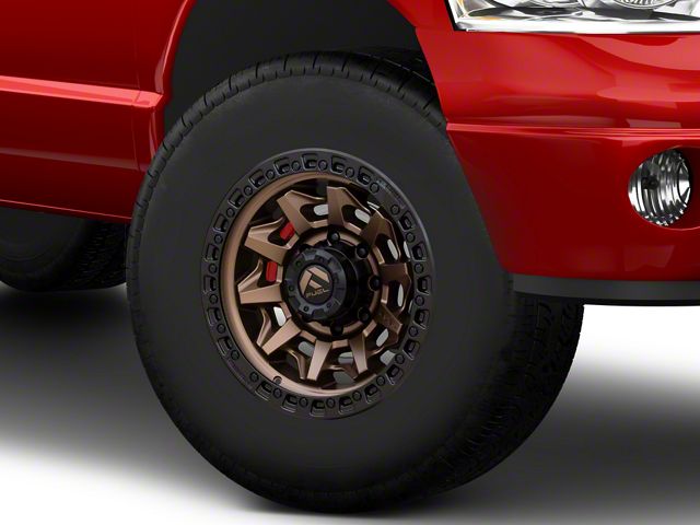 Fuel Wheels Covert Matte Bronze with Black Bead Ring 8-Lug Wheel; 17x9; 1mm Offset The Fuel Wheels Covert Matte Bronze with Black Bead Ring 8-Lug Wheel combines a sleek, sophisticated design with premium construction that enhances the visual appeal and complements a wide range of vehicle styles. This wheel is perfect for those seeking to make a bold statement while maintaining elegance and robustness.