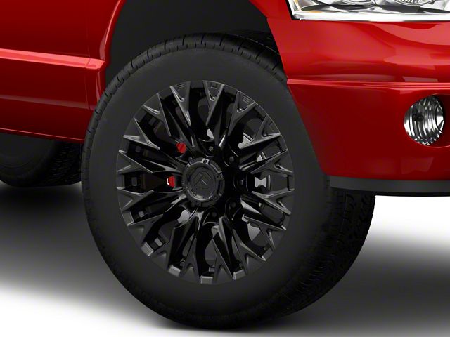 Fuel Wheels Flame Blackout 8-Lug Wheel; 20x9; 1mm Offset The Fuel Wheels Flame Blackout 8-Lug Wheel combines a sleek, sophisticated design with premium construction that enhances the visual appeal and complements a wide range of vehicle styles. This wheel is perfect for those seeking to make a bold statement while maintaining elegance and robustness.