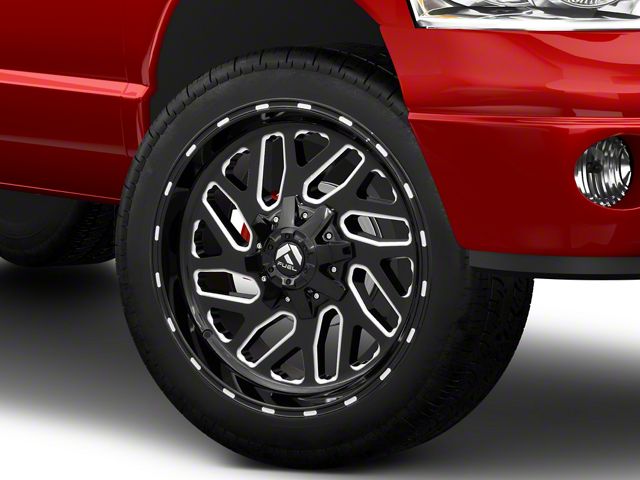 Fuel Wheels Triton Gloss Black Milled 8-Lug Wheel; 24x12; -44mm Offset The Fuel Wheels Triton Gloss Black Milled 8-Lug Wheel combines a sleek, sophisticated design with premium construction that enhances the visual appeal and complements a wide range of vehicle styles. This wheel is perfect for those seeking to make a bold statement while maintaining elegance and robustness.