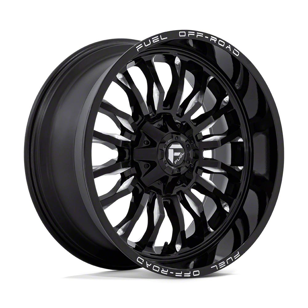 Fuel Wheels Arc Gloss Black Milled 6-Lug Wheel; 22x10; -18mm Offset The Fuel Wheels Arc Gloss Black Milled 6-Lug Wheel combines a sleek, sophisticated design with premium construction that enhances the visual appeal and complements a wide range of vehicle styles. This wheel is perfect for those seeking to make a bold statement while maintaining elegance and robustness.