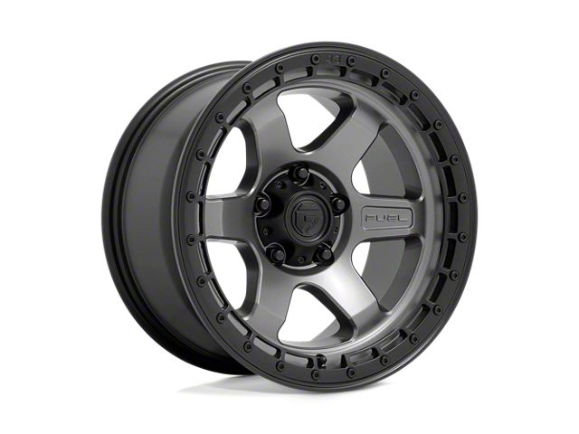 Fuel Wheels Block Matte Gunmetal with Black Ring 6-Lug Wheel; 18x9; 20mm Offset The Fuel Wheels Block Matte Gunmetal with Black Ring 6-Lug Wheel combines a sleek, sophisticated design with premium construction that enhances the visual appeal and complements a wide range of vehicle styles. This wheel is perfect for those seeking to make a bold statement while maintaining elegance and robustness.