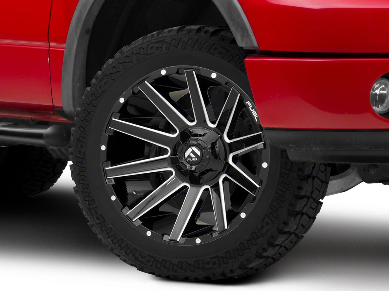 Application. This Fuel Wheels Contra Gloss Black Milled 6-Lug Wheel; 22x12; -43mm Offset with a backspace of 4.808 Inch, 122.2mm and bolt pattern of 6 x 135mm (6 x 5.31-Inch) ensures impeccable alignment and driving stability. It's designed to fit the 04-08 F-150 models, sold individually.