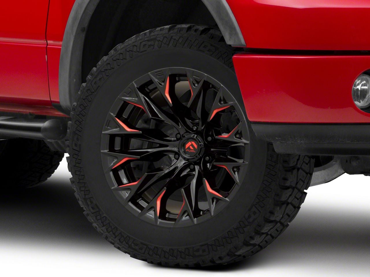 Fuel Wheels Flame Gloss Black Milled with Red Accents 6-Lug Wheel; 20x9; 20mm Offset. Enhance your vehicle's look with the Fuel Wheels Flame Gloss Black Milled with Red Accents 6-Lug Wheel. This premium wheel adds a touch of elegance and class to your vehicle, complementing its sophisticated aesthetic.