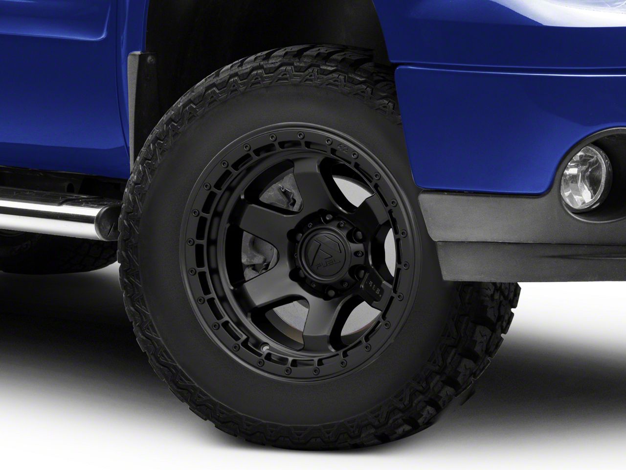 Fuel Wheels Block Matte Black with Black Ring 6-Lug Wheel; 18x9; 1mm Offset - Enhance your vehicle's style with the Fuel Wheels wheel. This wheel's distinctive design and finish complement your vehicle's aesthetics, making a bold statement. It's crafted to accentuate the unique character of your car, emphasizing a premium and robust appeal.
