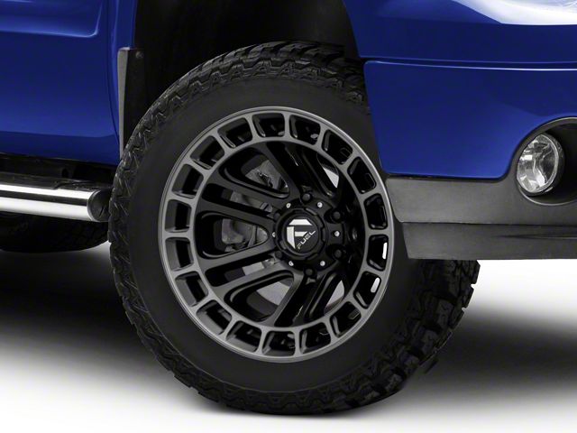 Fuel Wheels Heater Matte Black Double Dark Tint Machined 6-Lug Wheel; 20x10; -18mm Offset offers a striking balance between style and durability. The design speaks to the brand's commitment to quality, enhancing the vehicle's appearance with its distinct look. This wheel, with its unique aesthetics, is ideal for drivers who appreciate a blend of modern design and robust functionality.