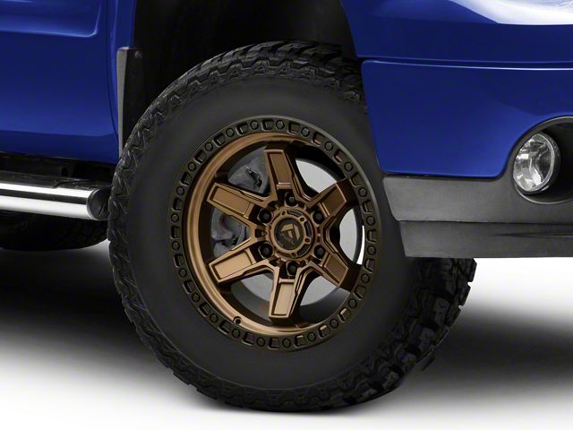 Fuel Wheels Kicker Matte Bronze with Black Bead Ring 6-Lug Wheel; 17x9; -12mm Offset - This wheel's elegant design will certainly enhance your vehicle's aesthetic, complementing its luxury and performance. The unique styling of this wheel makes it an ideal choice for a standout quality of your ride, reflecting the premium quality associated with the Fuel Wheels brand.
