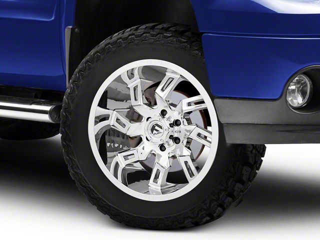 Application. This Fuel Wheels Lockdown Chrome 6-Lug Wheel; 20x10; -18mm Offset, with a backspace of 4.791 Inch, 121.7mm and bolt pattern of 6 x 139.7mm (6 x 5.5-Inch), is designed to enhance alignment and driving stability, ensuring a perfect fit with the vehicle model. Specifically designed to fit 2007-2013 Sierra 1500 models, this wheel's specifications contribute to a seamless alignment and stable driving experience by ensuring the wheel fits perfectly within the vehicle's wheel well, reducing the risk of rubbing issues and optimizing handling characteristics. Sold individually.
