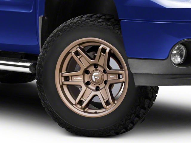 Fuel Wheels Slayer Matte Bronze 6-Lug Wheel; 18x8.5; 1mm Offset exudes sophistication with its finish, offering a sleek and modern appeal to any vehicle it adorns. The design is meticulously crafted to enhance the aesthetic of your vehicle, giving it a distinctive and upscale look. Perfect for those seeking to elevate their vehicle's style, this wheel blends seamlessly with both contemporary and classic vehicle designs, making it a versatile choice for a wide range of vehicles. Its robust construction ensures durability, making it a reliable choice for drivers who value both style and quality.