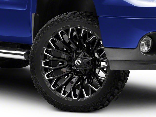 Fuel Wheels Strike Gloss Black Milled 6-Lug Wheel; 22x10; -18mm Offset The Fuel Wheels Strike Gloss Black Milled 6-Lug Wheel combines a sleek, sophisticated design with premium construction that enhances the visual appeal and complements a wide range of vehicle styles. This wheel is perfect for those seeking to make a bold statement while maintaining elegance and robustness.