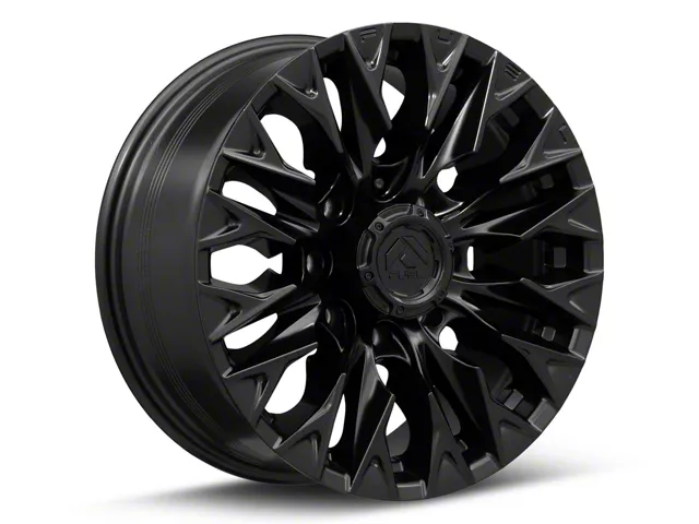 Fuel Wheels Flame Blackout 8-Lug Wheel; 20x10; -18mm Offset - This wheel's elegant design will certainly enhance your vehicle's aesthetic, complementing its luxury and performance. The unique styling of this wheel makes it an ideal choice for a standout quality of your ride, reflecting the premium quality associated with the Fuel Wheels brand.