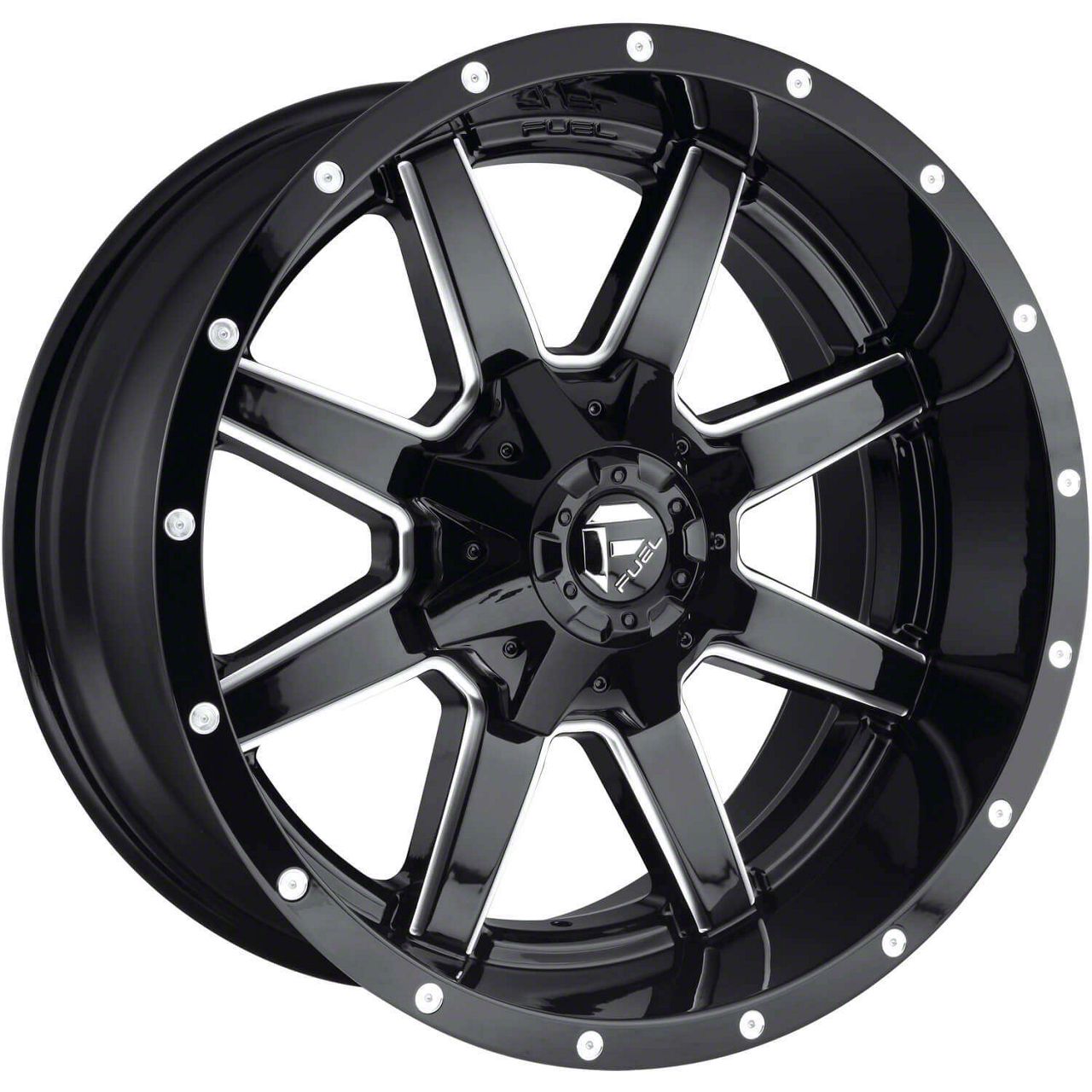 The 18x9 Fuel Wheels Maverick Gloss Black Milled 8-Lug Wheel is completed in a high-quality gloss black finish with mirror cut accents for a striking contrast in appearance that everyone will envy.