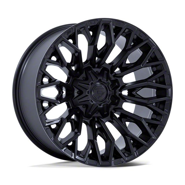 Fuel Wheels Strike Blackout 8-Lug Wheel; 20x9; 1mm Offset. The Fuel Wheels Strike Blackout 8-Lug Wheel offers a striking balance of style and refinement. Its unique design accentuates the vehicle's aesthetic, while the premium construction underscores its robust nature. This wheel is a perfect choice for those seeking both elegance and a strong visual statement.