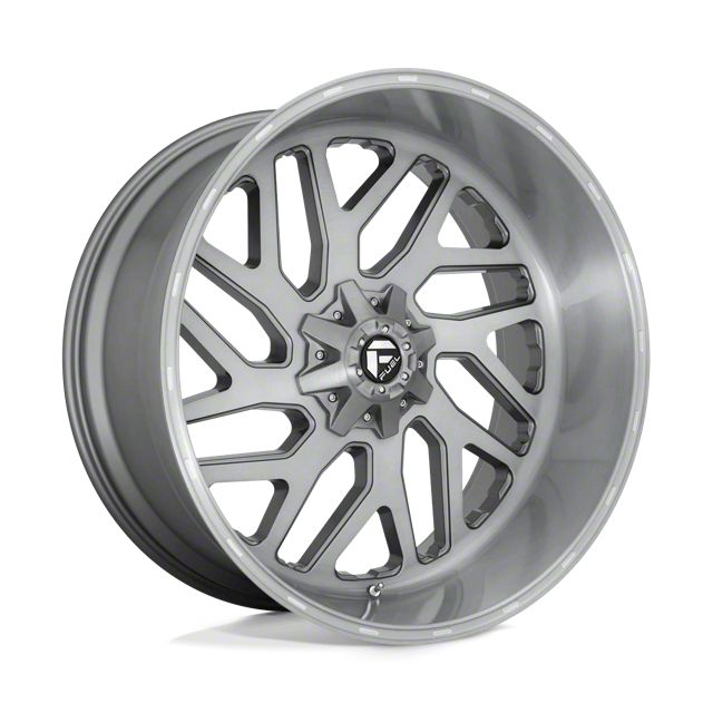 Fuel Wheels Triton Platinum Brushed Gunmetal with Tinted Clear 8-Lug Wheel; 26x12; -44mm Offset The Fuel Wheels Triton Platinum Brushed Gunmetal with Tinted Clear 8-Lug Wheel combines a sleek, sophisticated design with premium construction that enhances the visual appeal and complements a wide range of vehicle styles. This wheel is perfect for those seeking to make a bold statement while maintaining elegance and robustness.