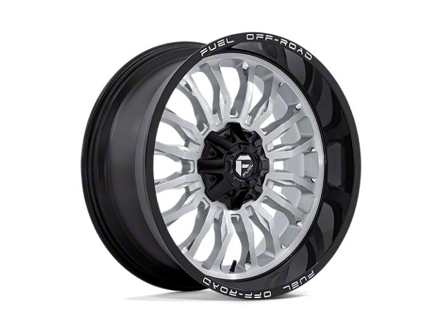 Fuel Wheels Arc Silver Brushed Face with Milled Black Lip 6-Lug Wheel; 22x10; -18mm Offset The Fuel Wheels Arc Silver Brushed Face with Milled Black Lip 6-Lug Wheel combines a sleek, sophisticated design with premium construction that enhances the visual appeal and complements a wide range of vehicle styles. This wheel is perfect for those seeking to make a bold statement while maintaining elegance and robustness.