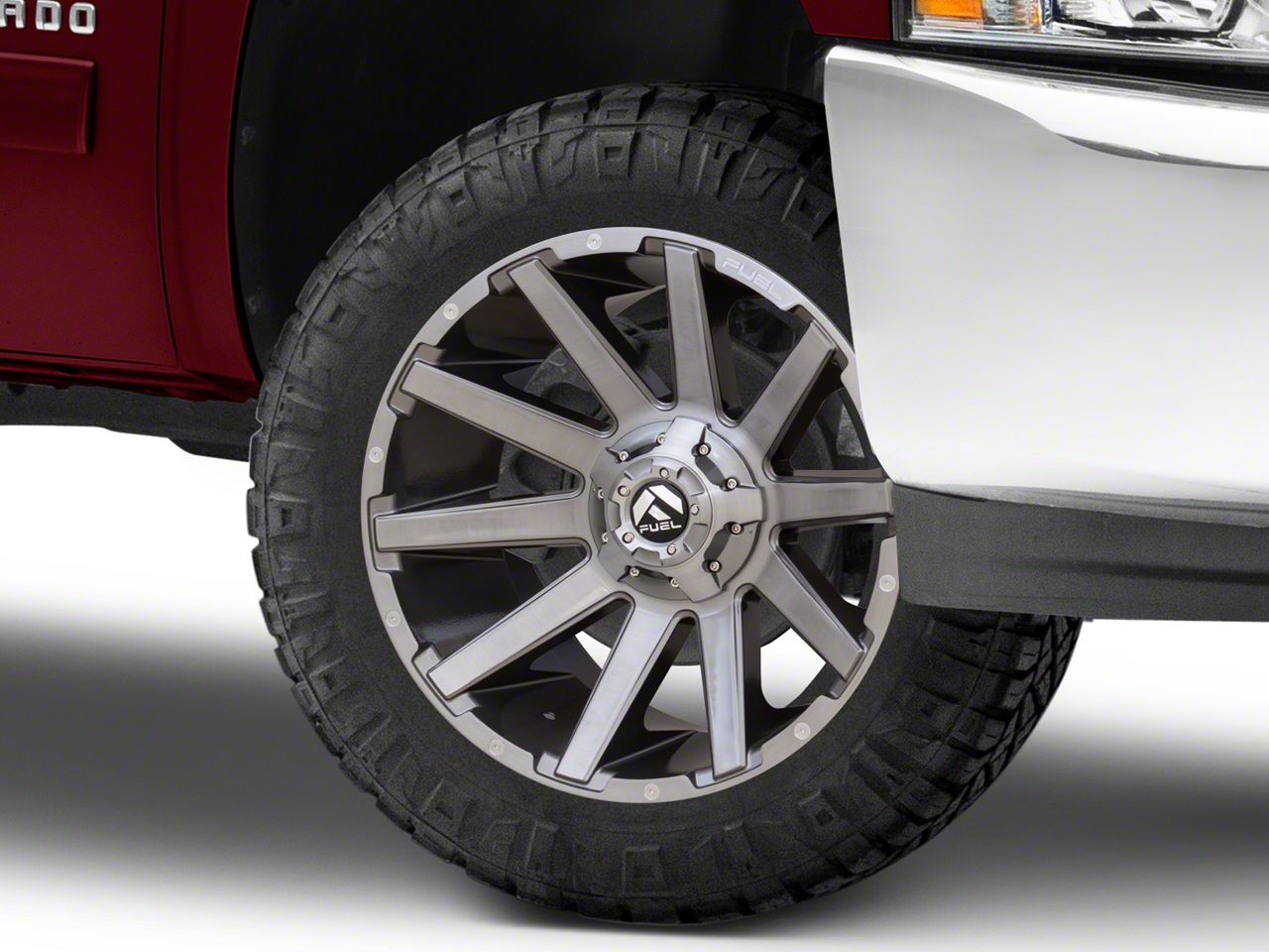 Application. This Fuel Wheels Contra Platinum Brushed Gunmetal with Tinted Clear 6-Lug Wheel; 20x10; -19mm Offset, with a backspace of 4.752 Inch, 120.7mm; and bolt pattern of 6 x 139.7mm (6 x 5.5-Inch), is designed to fit the 2007-2013 Silverado 1500 . The precise specifications of the wheel ensure proper alignment and driving stability, perfectly complementing the vehicle's model. Sold individually.