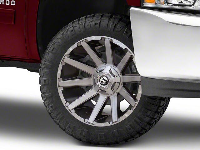 The 20x10 Fuel Wheels Contra Platinum Brushed Gunmetal with Tinted Clear 6-Lug Wheel is completed in a high-quality brushed gunmetal finish with contrasting accents for an aggressive appearance that will turn heads. This wheel features a durable clear coat that stands up to the hazards of everyday driving.