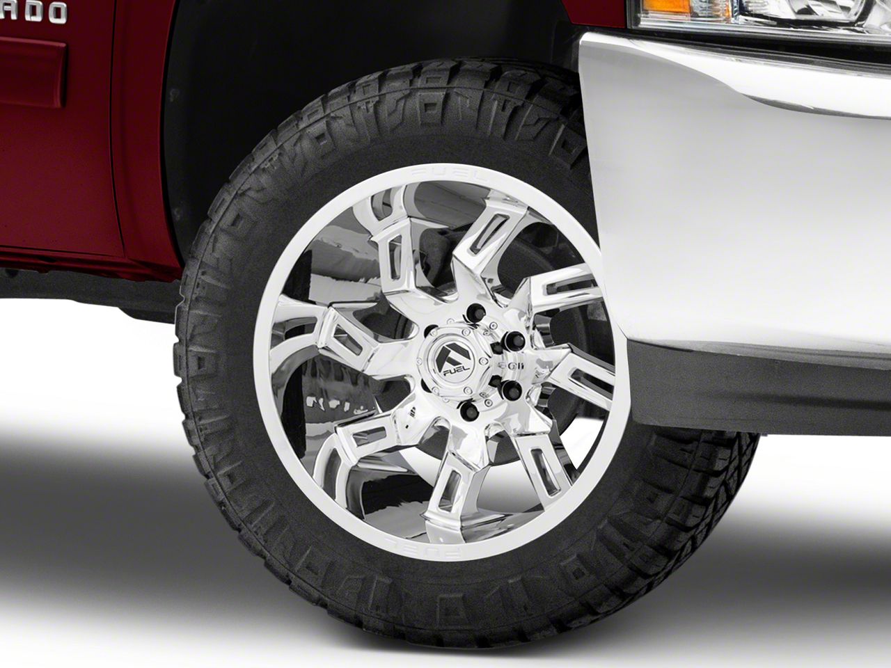 Application. This Fuel Wheels Lockdown Chrome 6-Lug Wheel; 20x9; 1mm Offset, with a backspace of 5.039 Inch, 128mm and bolt pattern of 6 x 139.7mm (6 x 5.5-Inch), is designed to enhance alignment and driving stability, ensuring a perfect fit with the vehicle model. Specifically designed to fit 2007-2013 Silverado 1500 models, this wheel's specifications contribute to a seamless alignment and stable driving experience by ensuring the wheel fits perfectly within the vehicle's wheel well, reducing the risk of rubbing issues and optimizing handling characteristics. Sold individually.