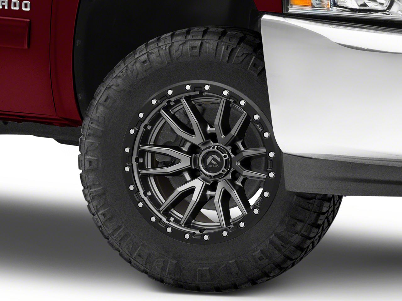 Application. This Fuel Wheels Rebel Matte Gunmetal with Black Bead Ring 6-Lug Wheel; 18x9; -12mm Offset with a backspace of 4.528 Inch, 115.1mm; and bolt pattern of 6 x 139.7mm (6 x 5.5-Inch) contributes to impeccable alignment and driving stability. Designed to fit 2007-2013 Silverado 1500 models, sold individually.