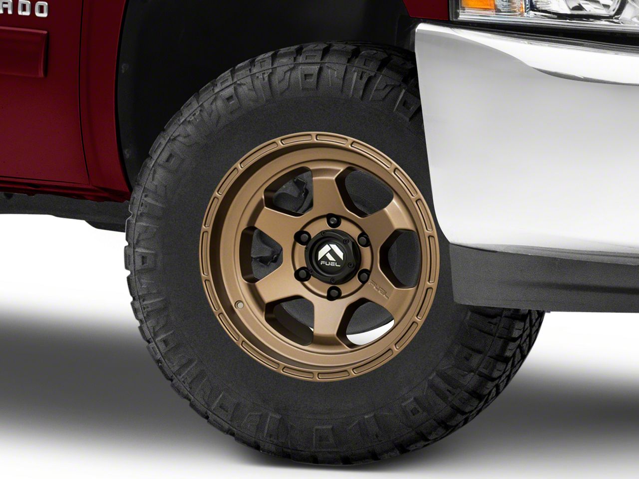 Application. This Fuel Wheels Shok Matte Bronze 6-Lug Wheel; 17x9; -12mm Offset with a backspace of 4.528 Inch, 115.1mm and bolt pattern of 6 x 139.7mm (6 x 5.5-Inch) ensures impeccable alignment and driving stability. It's designed to fit the 2007-2013 Silverado 1500 models, sold individually.