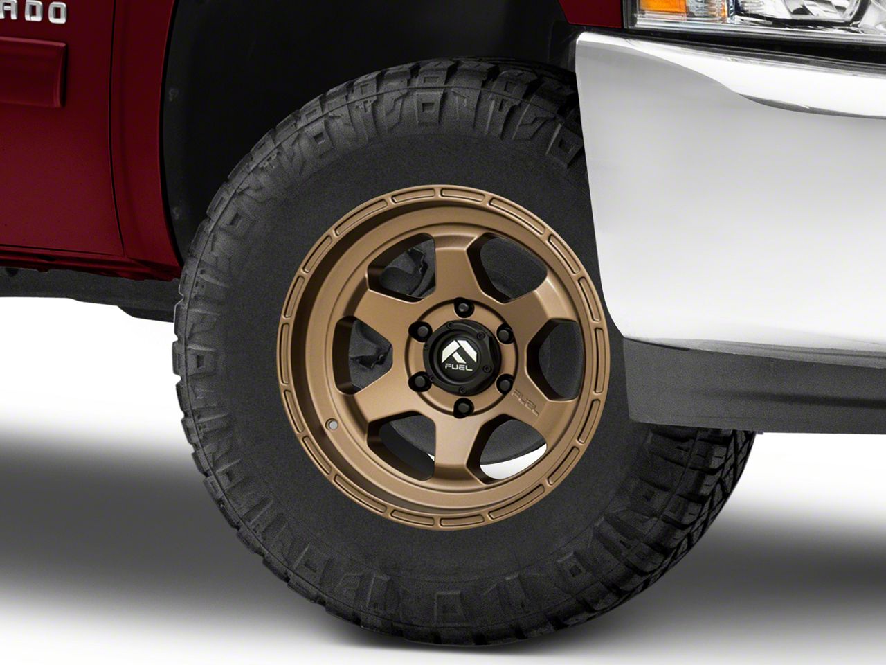 Application. This Fuel Wheels Shok Matte Bronze 6-Lug Wheel; 17x9; 1mm Offset with a backspace of 5.04 Inch, 128.1mm; and bolt pattern of 6 x 139.7mm (6 x 5.5-Inch), contributes to alignment, driving stability, and ensures a perfect fit with the vehicle model. Designed to fit the 2007-2013 Silverado 1500. Sold individually.