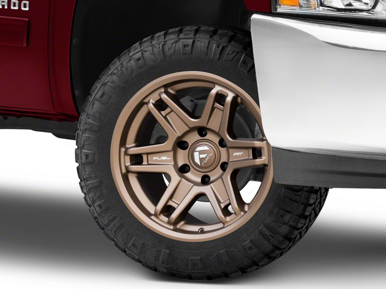 Application. The Fuel Wheels Slayer Matte Bronze 6-Lug Wheel; 20x9; 1mm Offset, with a backspace of 5.039 Inch, 128mm and a bolt pattern of 6 x 139.7mm (6 x 5.5-Inch), is designed to enhance alignment and stability for a smooth driving experience. Specifically tailored to fit 2007-2013 Silverado 1500 models, it ensures a perfect blend of style and functionality. Sold individually, this wheel is an ideal upgrade for your vehicle.