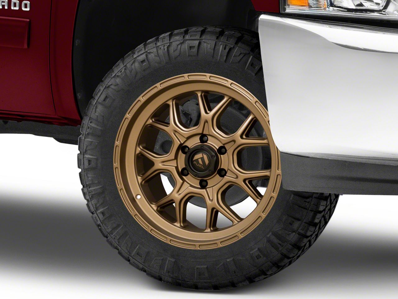Application. This Fuel Wheels Tech Matte Bronze 6-Lug Wheel; 20x9; 20mm Offset, with a backspacing of 5.788 Inch, 147.1mm and bolt pattern of 6 x 139.7mm (6 x 5.5-Inch), ensures precise alignment and stable driving. Designed to fit 2007-2013 Silverado 1500 models, this wheel is sold individually.